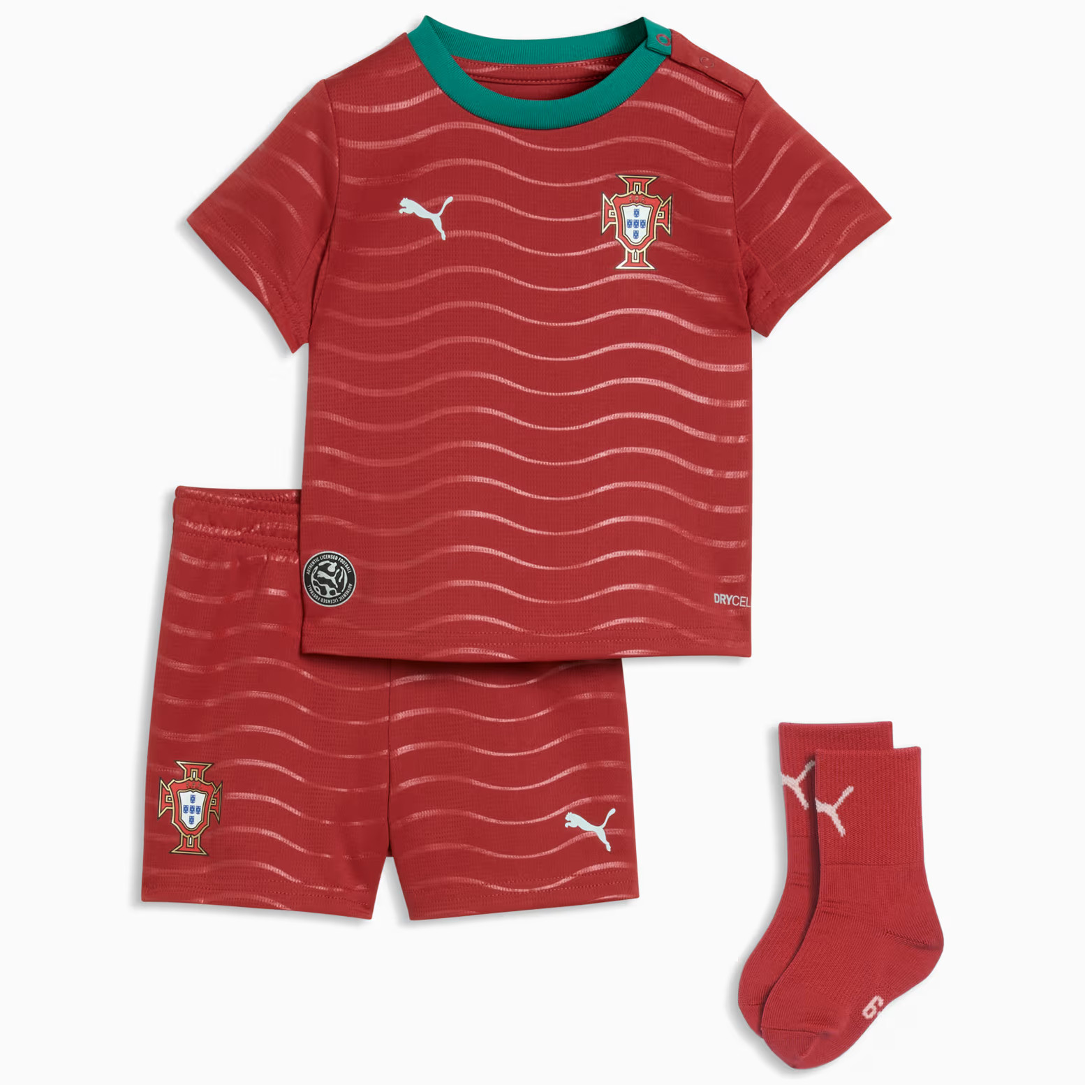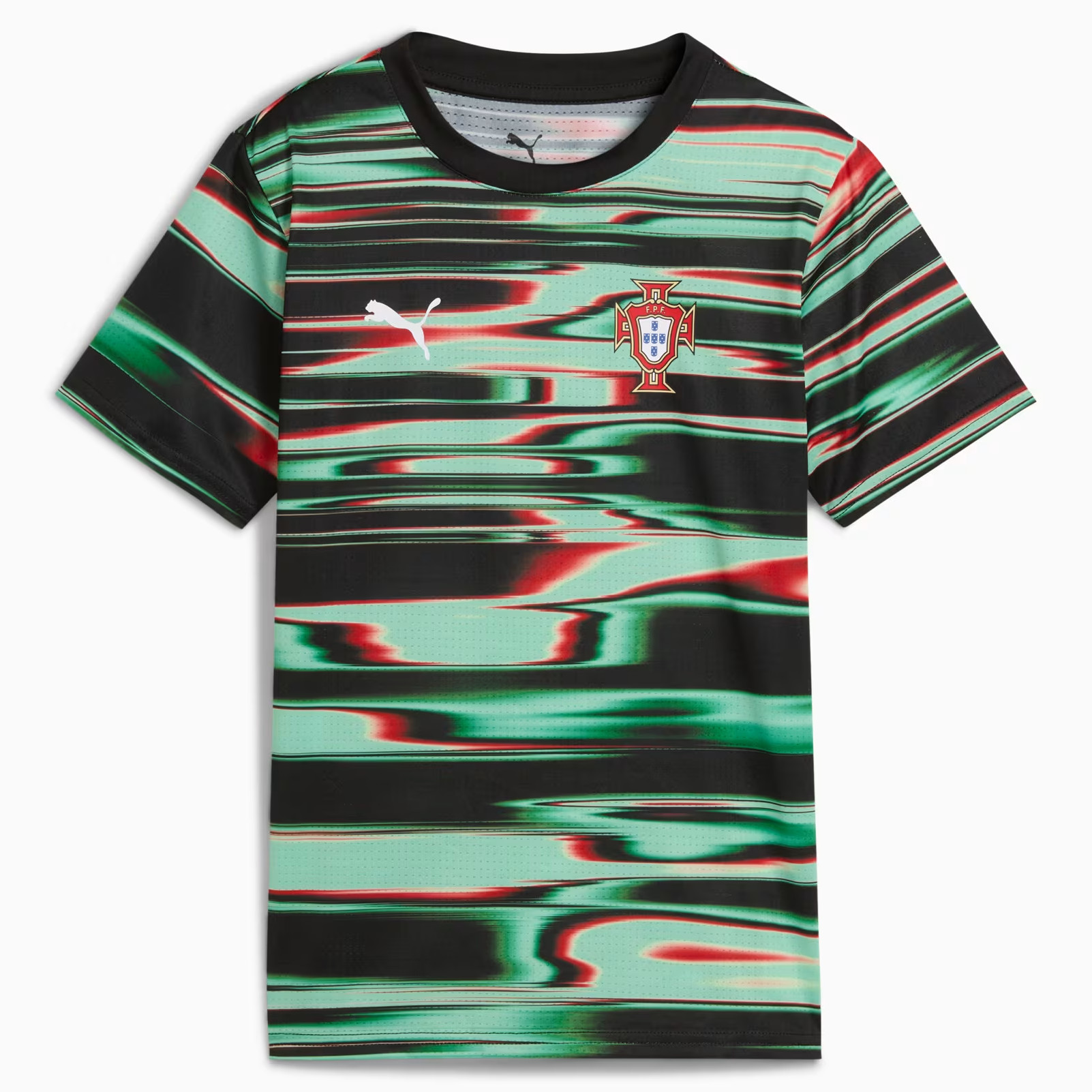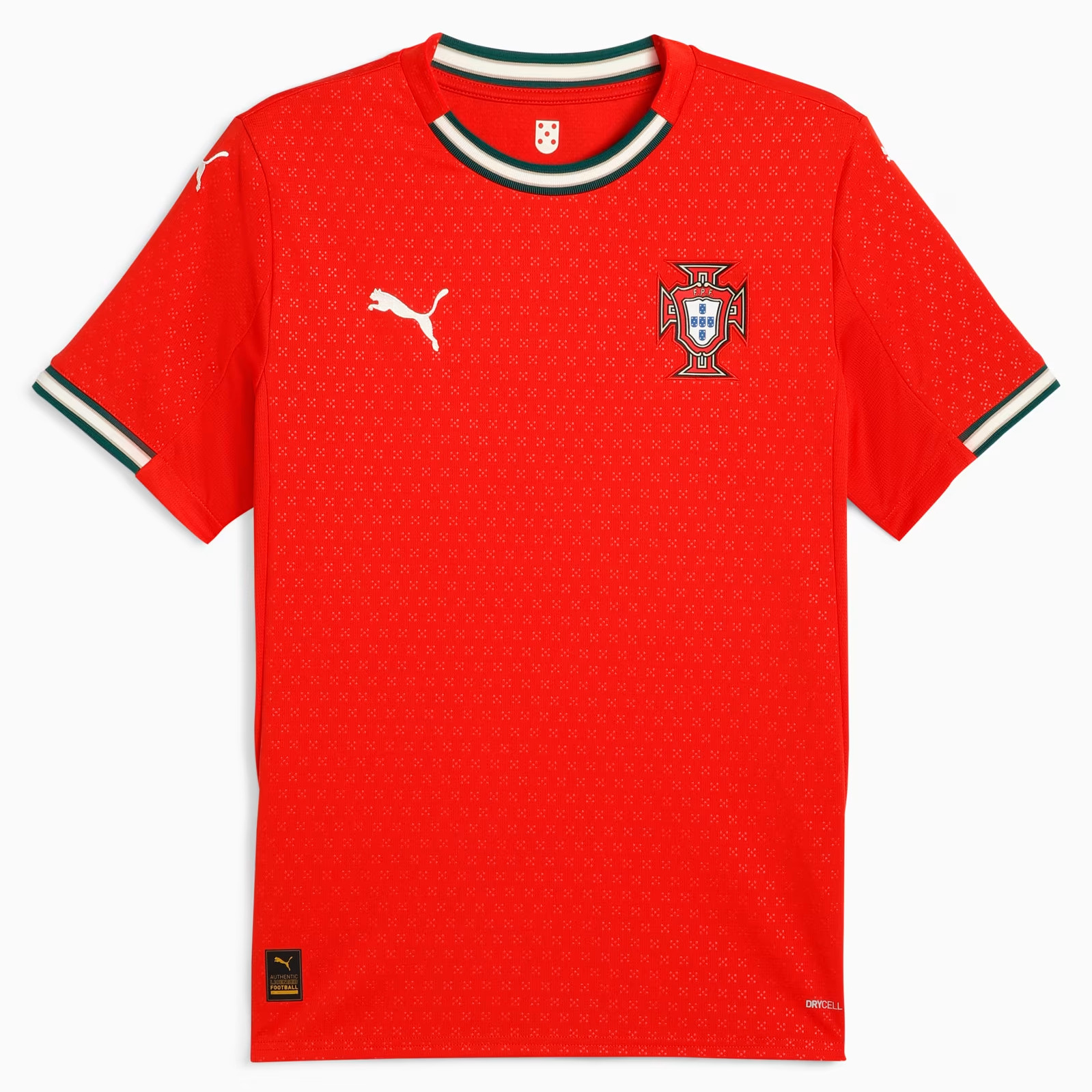 Check hier het nieuwste Portugal voetbalshirt, thuisshirt en uitshirt voor 2016-2017. In deze voetbalshirts speelt het nationale elftal van Portugal de wedstrijden tijdens Euro 2016 en de kwalificatie- en oefenwedstrijden ter voorbereiding op het WK van 2018 gedurende 2016-2017. Nike is de kledingsponsor van het nationale elftal van Portugal en is dit al 1997. Het Portugees voetbalelftal, A Seleção, won nog nooit een eindronde. Toch bracht het land een hoop topvoetballers voort, zoals Eusebio, Figo en huidig Real-Madrid ster Ronaldo. Het beste resultaat dateert uit 2004, toen Portugal de finale op het EK verloor. Pauleta is Portugees topscoorder aller tijden met 47 treffers. Het huidige Portugal thuisshirt 2016-2017, geleverd door kledingleverancier Nike, is rood en bevat groene details. Het eerste thuisshirt bestond tevens uit deze kleur. Door de jaren heen is dit rood vaak veranderd in paars. De kleur van de broek en kousen zijn in het bestaan van het Portugees elftal ook vele malen veranderd. Het volledige tenue is dit jaar rood, echter de kousen zijn groen. Het uitshirt is vaak wit geweest! Nu is deze echter turquoise. Check hier het design van het nieuwe Portugal uitshirt 2016-2017. Met sterspeler Ronaldo zijn zij na de plaatsing uiteraard kanshebber voor het winnen van Euro 2016. Het EK is nog een van de prijzen die ontbreekt op zijn CV. Het voetbalshirt met onder andere de officiele bedrukking van Cristiano Ronaldo is uiteraard verkrijgbaar door te klikken op jouw favoriete Portugal voetbalshirt of check ook goedkopere retro shirts en t-shirts!