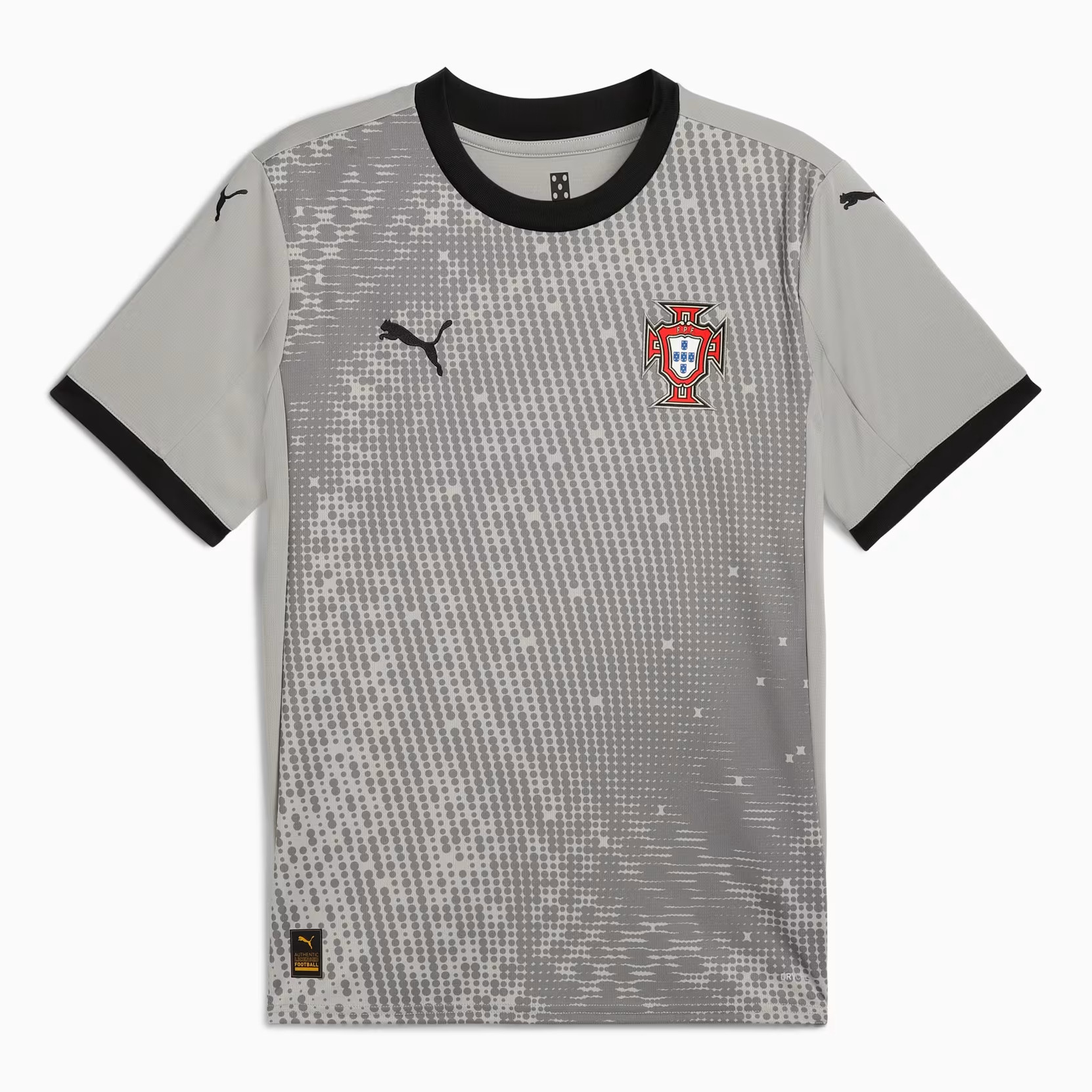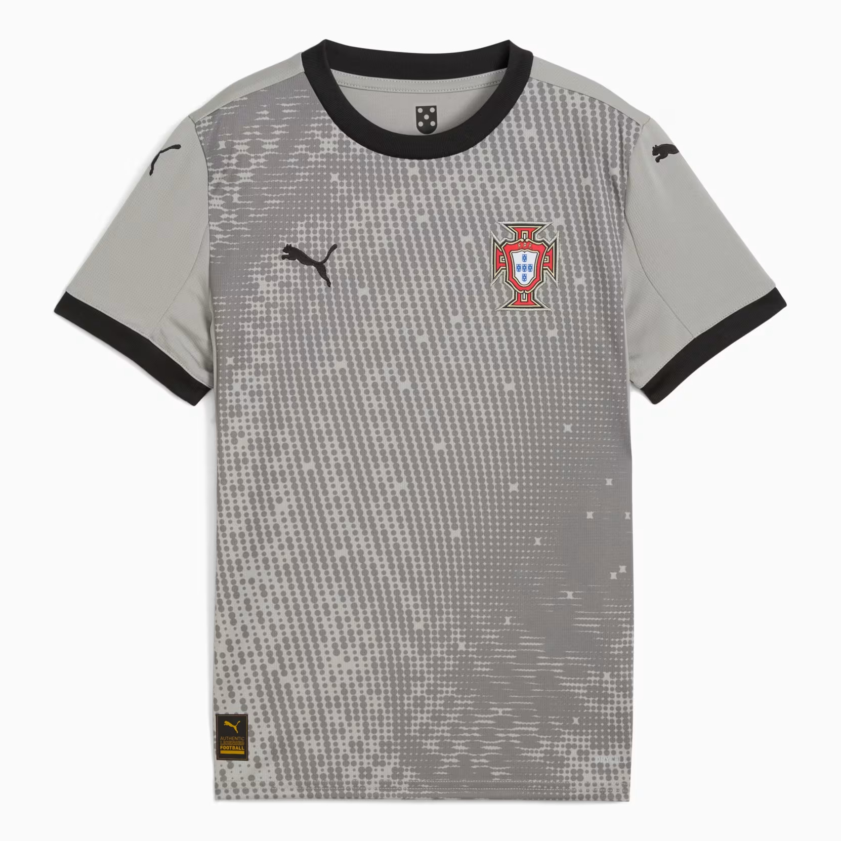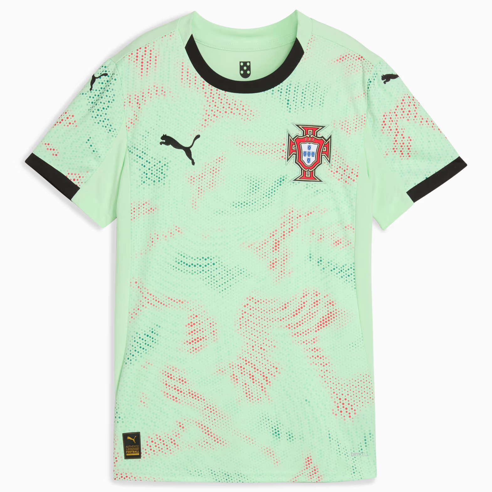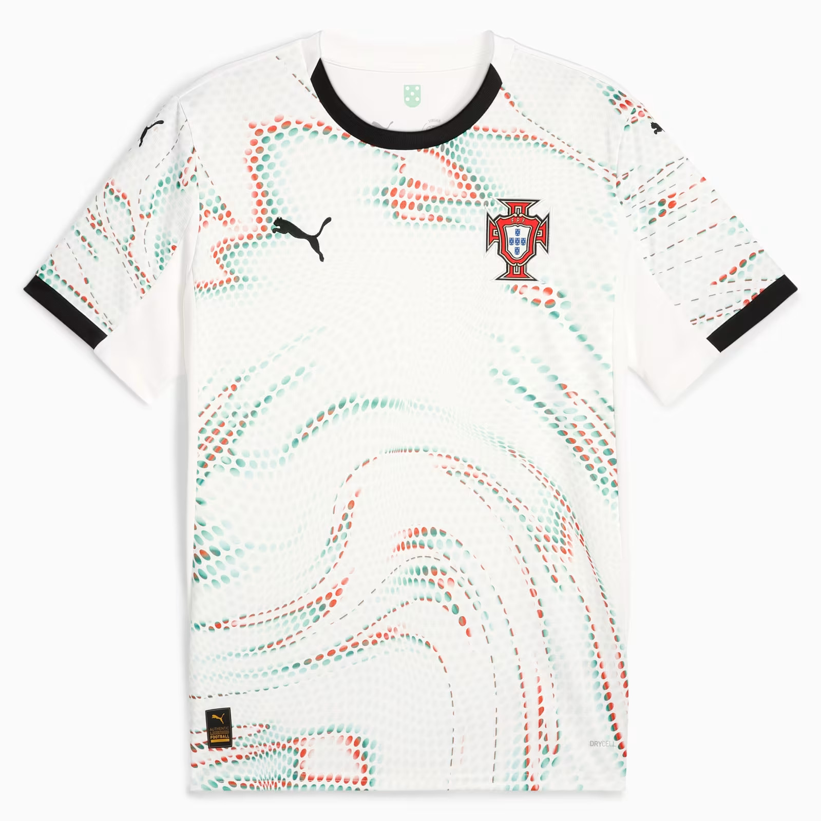 Check hier het nieuwste Portugal voetbalshirt, thuisshirt en uitshirt voor 2016-2017. In deze voetbalshirts speelt het nationale elftal van Portugal de wedstrijden tijdens Euro 2016 en de kwalificatie- en oefenwedstrijden ter voorbereiding op het WK van 2018 gedurende 2016-2017. Nike is de kledingsponsor van het nationale elftal van Portugal en is dit al 1997. Het Portugees voetbalelftal, A Seleção, won nog nooit een eindronde. Toch bracht het land een hoop topvoetballers voort, zoals Eusebio, Figo en huidig Real-Madrid ster Ronaldo. Het beste resultaat dateert uit 2004, toen Portugal de finale op het EK verloor. Pauleta is Portugees topscoorder aller tijden met 47 treffers. Het huidige Portugal thuisshirt 2016-2017, geleverd door kledingleverancier Nike, is rood en bevat groene details. Het eerste thuisshirt bestond tevens uit deze kleur. Door de jaren heen is dit rood vaak veranderd in paars. De kleur van de broek en kousen zijn in het bestaan van het Portugees elftal ook vele malen veranderd. Het volledige tenue is dit jaar rood, echter de kousen zijn groen. Het uitshirt is vaak wit geweest! Nu is deze echter turquoise. Check hier het design van het nieuwe Portugal uitshirt 2016-2017. Met sterspeler Ronaldo zijn zij na de plaatsing uiteraard kanshebber voor het winnen van Euro 2016. Het EK is nog een van de prijzen die ontbreekt op zijn CV. Het voetbalshirt met onder andere de officiele bedrukking van Cristiano Ronaldo is uiteraard verkrijgbaar door te klikken op jouw favoriete Portugal voetbalshirt of check ook goedkopere retro shirts en t-shirts!